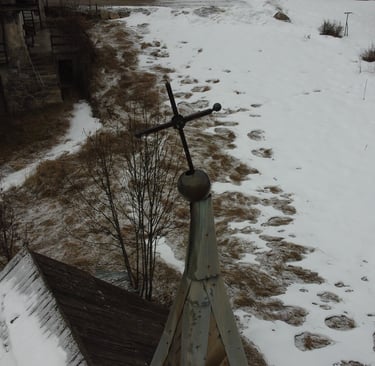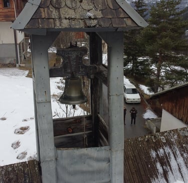 Cloche en bronze en place dans le clocher, actionnée au moyen d"une corde depuis la nef. 19e siècle (?).