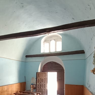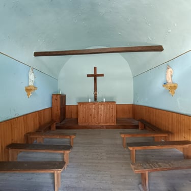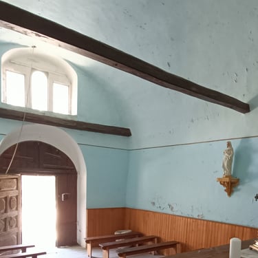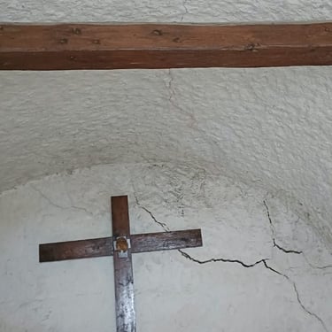 1) le mur du fond de la chapelle adossé à la montagne pousse à l'intérieur et en passe de s'effondrer